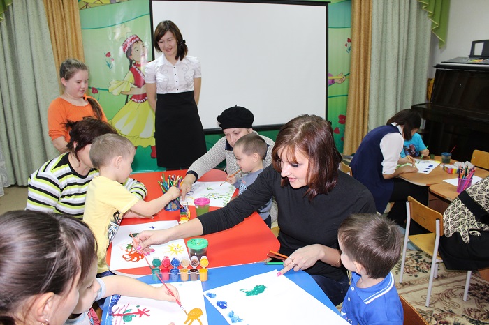 — Дорогие мамы, целью нашего сегодняшнего занятия было, во-первых создание благоприятной позитивной атмосферы, приятного совместного времяпрепровождения мамы и малыша. Во-вторых, я хотела познакомить вас с такой техникой работы психолога, как арт-терапия, в данном случае сказкотерапия и изотерапия, которые зачастую использую на занятиях. Сказки или рисование используются в период адаптации, при коррекции страхов, тревожности, в работе с агрессивными, трудновоспитуемыми детьми, или же застенчивыми детьми, в работе с гиперактивными и с детьми, которым не достает элементарного внимания в семье.