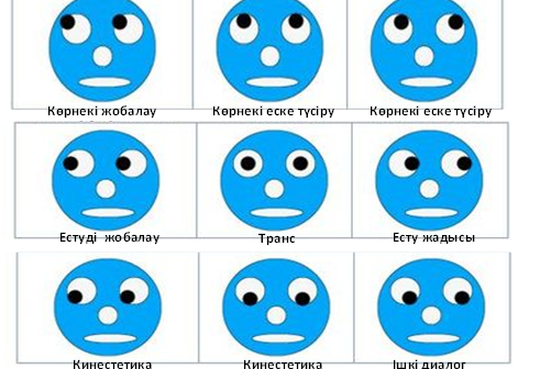 Сұрақ қойғанда, жауап бергенде, сөйлегенде немесе оқушы ойланғанда визуалдардың көзі жоғары қарайды. Аудиалдардың көзі тіке ортаға немес екі құлаққа бағытталады. Ал кинестетиктердің көзі төменге қарай бағытталады.