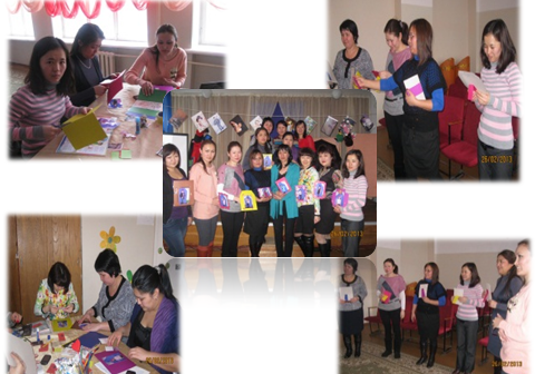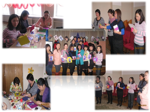 Барысы: Үстелдер 2 топқа бөлініп қойылған. Әрбір семинарға кірген қатысушыны фотоға түсіру. Семинарға келген қатысушылар үстелге жайғасады.