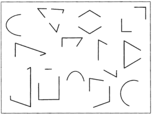 Балаларға аяқталмаған, сызықпен бейнеленген түрлі геометриялық пішіндердің суреттерін көрсетеді, бірақ олар аяқталмаған. Оны баланың аяқтауын өтінесіз (4-сурет).