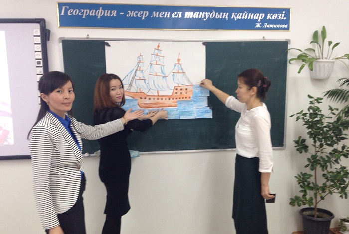 «Мектеп – кеме, білім – теңіз», демекші тақтадан кеменің суретін көріп тұрмыз. Ендеше ол мектебіміз деп елестетеміз. Білім ол теңіз. Олай болса алған әсерлерімізді көк қағазға жазып білім нәрімен шәкірттерімізді сусындатайық.